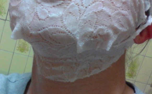 面膜取出後,可以看到有蕾絲的花紋~