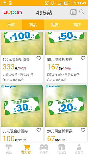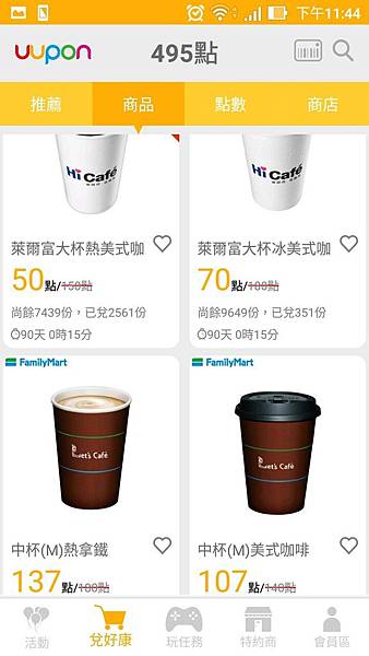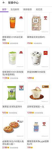 所集的點數可以用來兌換悠遊卡儲值金、現金折價券、冰品、飲品、咖啡、零食,