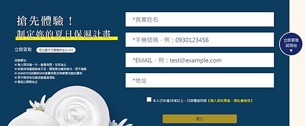 105. 免費索取氧顏森活舒活保濕系列試用包。