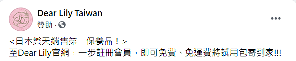 48.至Dear Lily官網註冊會員,即可免費、免運費索取試用包。
