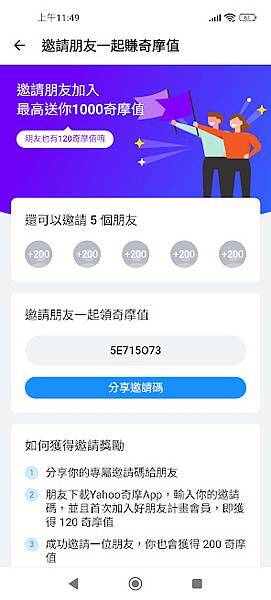 輸入我的邀請碼5E715O73,可以賺120奇摩值哦!