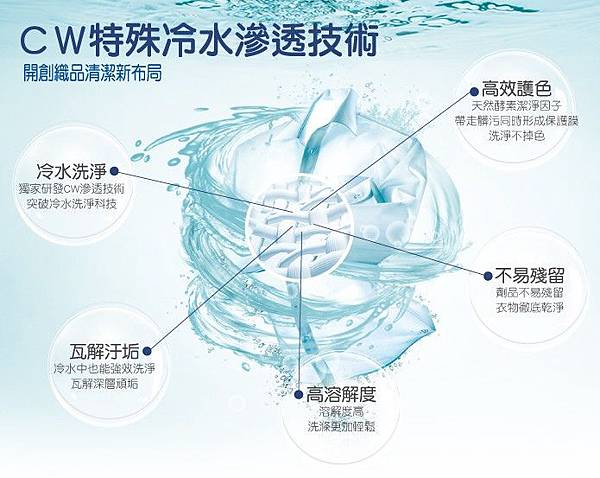 CW是特殊冷水滲透技術,突破冷水洗淨科技,