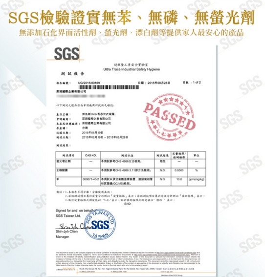 還有通過SGS檢測,無苯、磷、螢光劑、石化界面活性劑、人工香料等有害添加物,