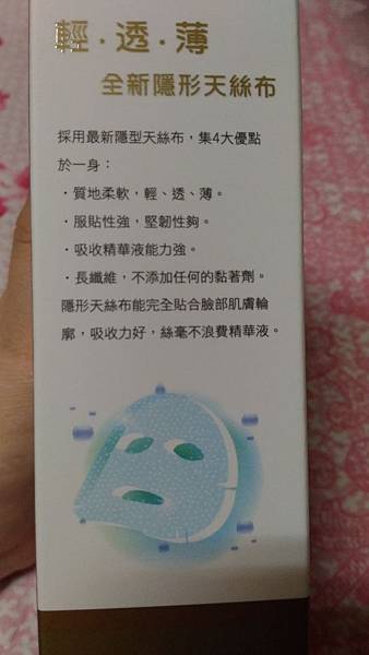 737面膜採用的是輕、薄、透的隱形天絲布,