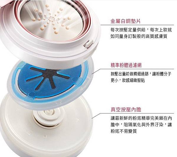這個粉蕊的設計是大有學問,可以定量供給及確保粉底精華的新鮮。