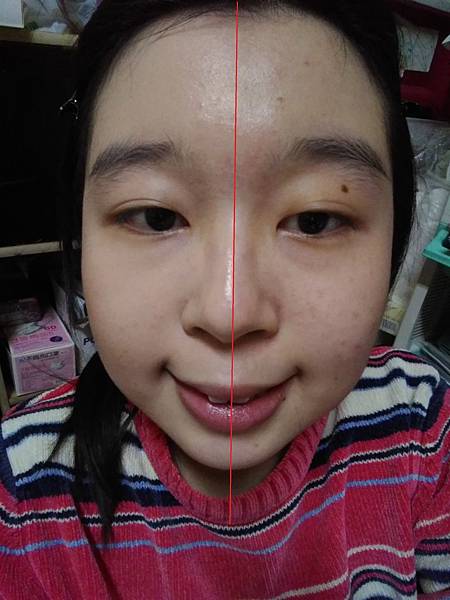 我先試了半臉,輕拍幾下輕鬆打造輕紗粉霧妝。