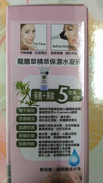 龍膽草精萃水凝乳當作妝前保養用→隔離彩妝、上裝服貼細緻
