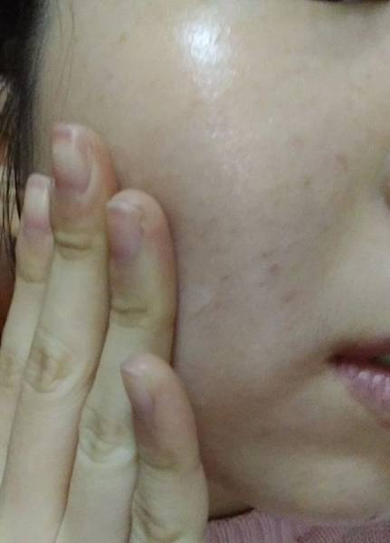 一整天下來,左邊的底妝仍然相當服貼,右邊卻出現脫妝、嘴角處甚至起屑的情況,