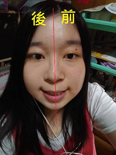 均勻點在臉上再抹開,我先試半臉: