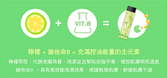 能量維他命植萃水凝膜添加了檸檬萃取與維他命B,減油加水,完美控油。