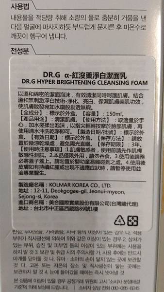 Dr.G α-紅沒藥出水平滑淨白光素顏霜中顯白度很高,所以用量可以很省。