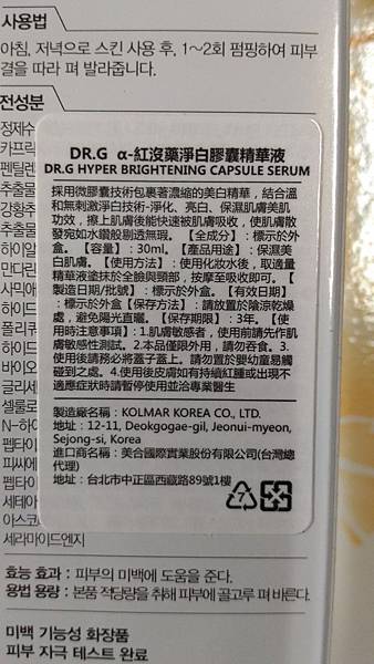 Dr.G α-紅沒藥淨白膠囊精華液易抹開、好吸收,保濕不黏膩,夏天也很適合。