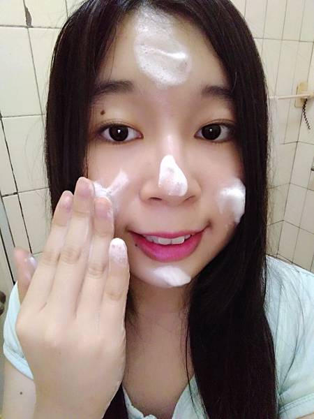 將泡沫輕柔地按於臉部,最後用清水洗淨。