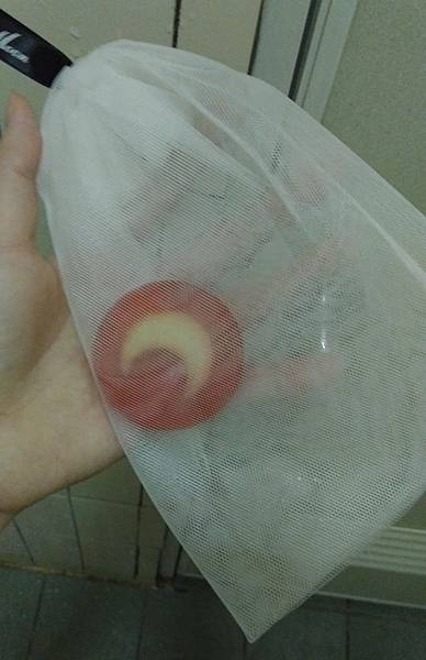 將月光潔顏泡泡面膜皂放入附贈的起泡網內打溼,置於手掌心搓揉。