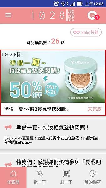 雖然這次是送氣墊粉餅半價折價卷而不是實品,但是完成任務可累積三點,
