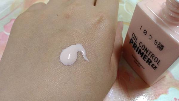 1028 超控油透亮飾底乳EX版粉瓶擠出來亦是粉色乳狀質地,
