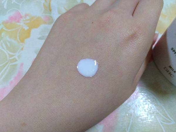 DHC金靚白水亮防曬乳是白色乳液狀的質地。