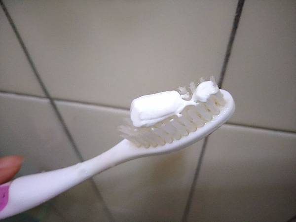 就是取適量德恩奈夜用牙膏直接塗抹在牙齒與牙齦上,