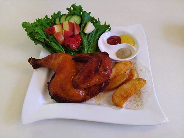 接下來則是主菜的部分,首先是迷迭碳烤奶油半雞套餐。