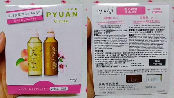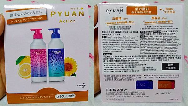 PYUAN純漾 活力星彩洗髮精及PYUAN純漾 活力星彩潤髮乳各15ml。