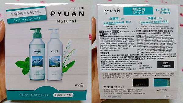 PYUAN純漾 清新悠境洗髮精及PYUAN純漾 清新悠境潤髮乳各15ml。
