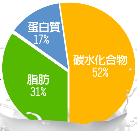 碳水化合物52%、脂肪31%、蛋白質17%,