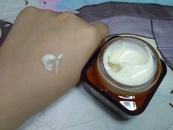 黃金胜肽花蜜賦活霜是細緻滑順的乳霜狀質地,乳霜我最怕太過黏膩、厚重,