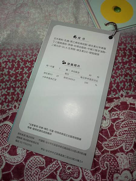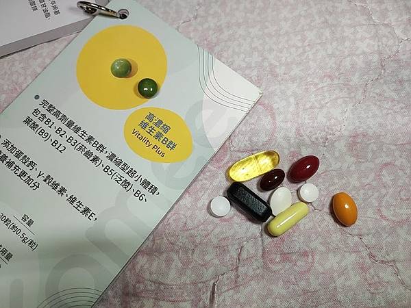 分別有綜合維他命、高濃縮維生素B群、維生素D、高濃縮螯合鈣、