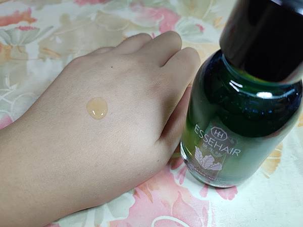 薑暖特調養髮精華為淡黃色精華液狀質地,