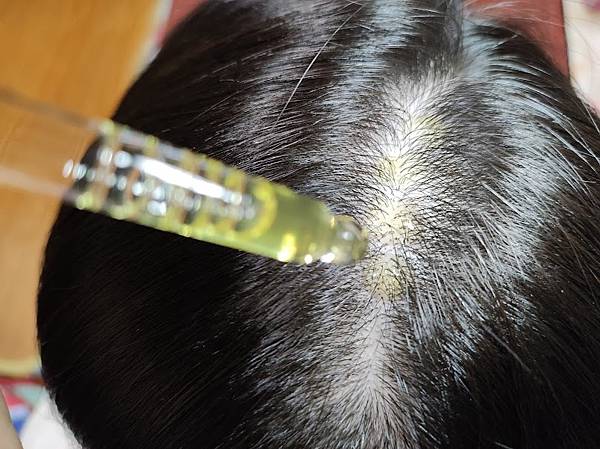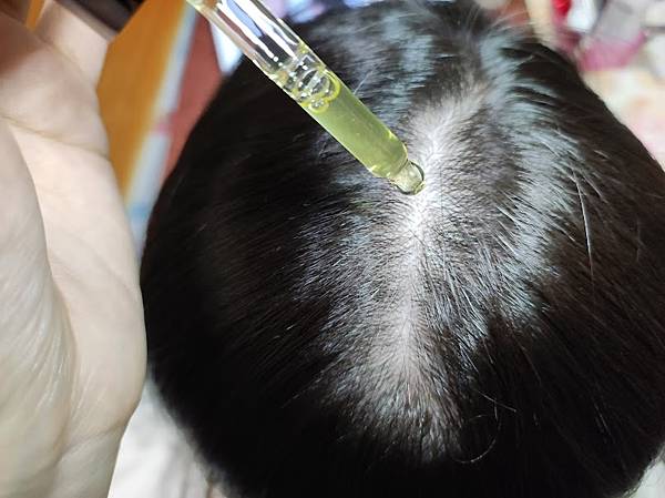 將薑暖特調養髮精華均勻點於頭皮上。