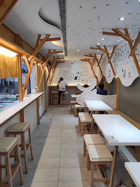 喜鹿甜品以和煦的木質調為延伸打造出明亮、舒適的環境,