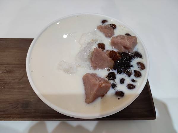 再配上有嚼勁得黑糖蒟蒻、鬆軟綿密的蜜芋頭,