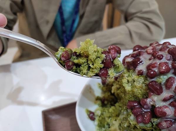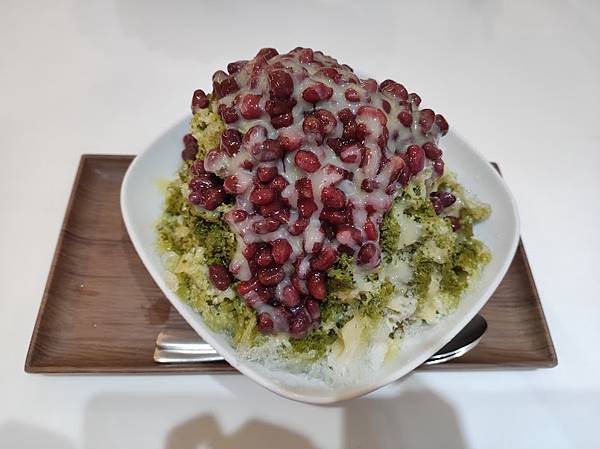 以濃郁的抹茶碎冰為基底,上面鋪滿粒粒分明的紅豆,