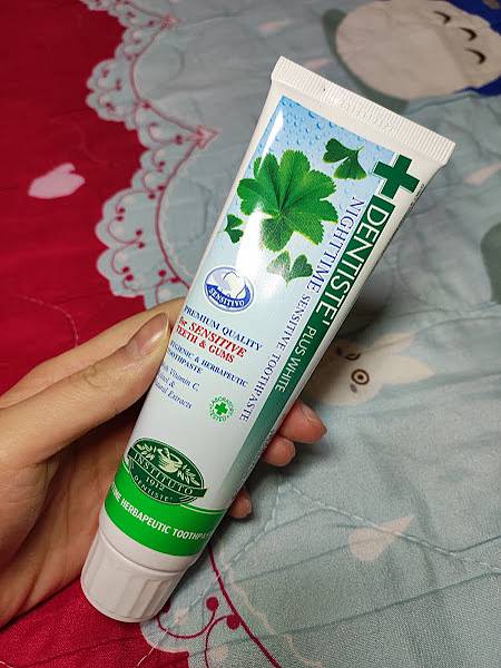 也因為牙醫選夜用牙膏天然植物精華為主成分且無糖分(改用木糖醇),